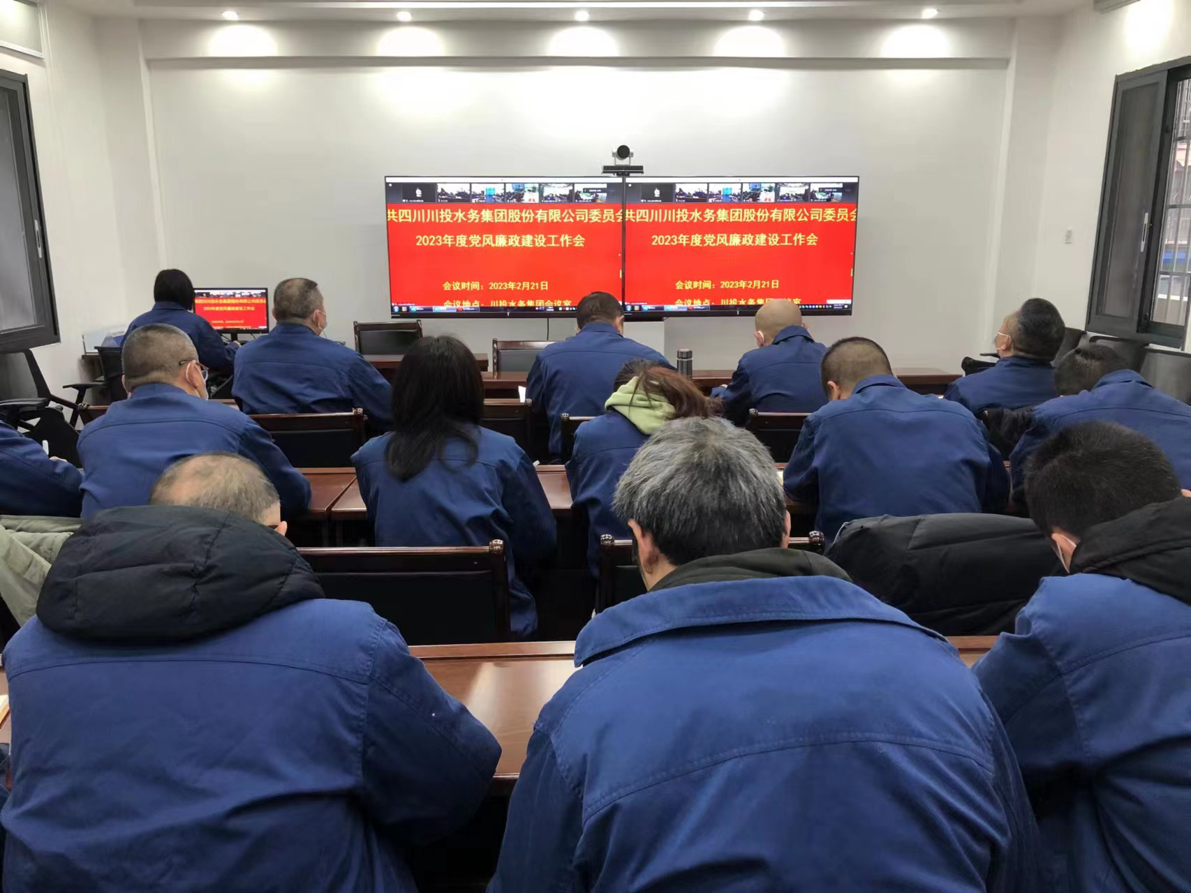 2023年2月21日上午10點(diǎn),為深入貫徹落實(shí)黨的二十大精神,堅(jiān)決貫徹二十屆中央紀(jì)委二次全會、省紀(jì)委十二屆二次全會精神,聚焦四川發(fā)展、四川省生態(tài)環(huán)保集團(tuán)2023年度黨風(fēng)廉政建設(shè)工作部署,川投水務(wù)集團(tuán)黨委組織召開2023年度黨風(fēng)廉政建設(shè)工作會,會議由川投水務(wù)集團(tuán)黨委委員、副總經(jīng)理嚴(yán)斯亮主持。公司本部領(lǐng)導(dǎo)班子成員、各部門負(fù)責(zé)人、全體員工、各所屬公司領(lǐng)導(dǎo)班子成員及中層管理人員通過視頻+現(xiàn)場形式參會。